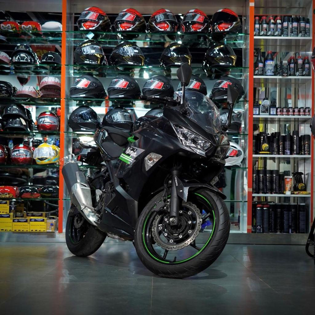 Kawasaki Ninja 400 2022 is a highly performing 400cc sports bike available in UAE, providing the best balance of performance, light weight, and aggressive styling. It has a mileage of only 7,000 km and is a great option for anyone looking for a low mileage second-hand Kawasaki Ninja 400 bike for sale in Sharjah. It is available at a highly competitive price of AED 22,000 against the UAE range starting from around AED 20,000 depending on the condition.