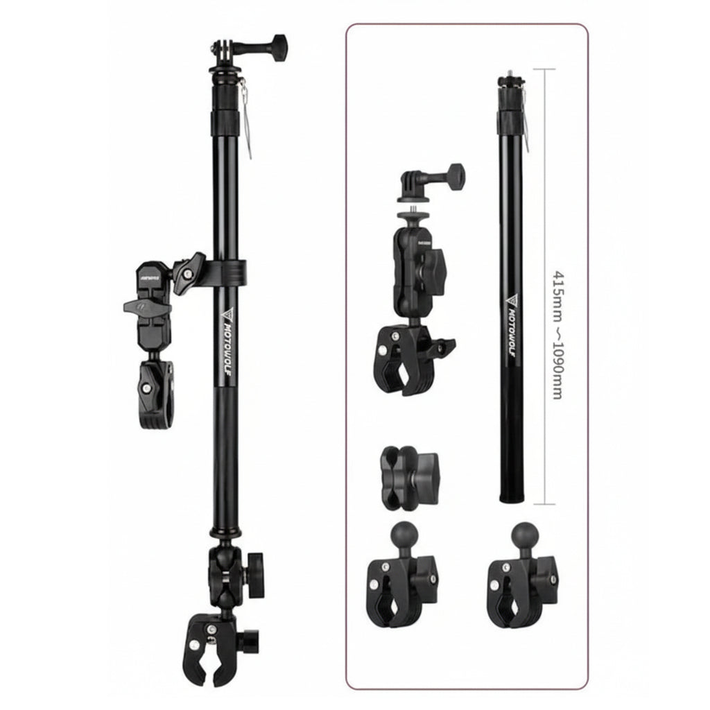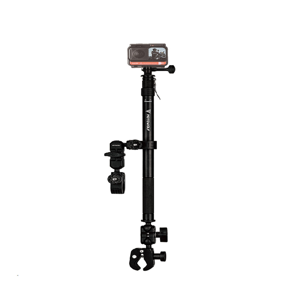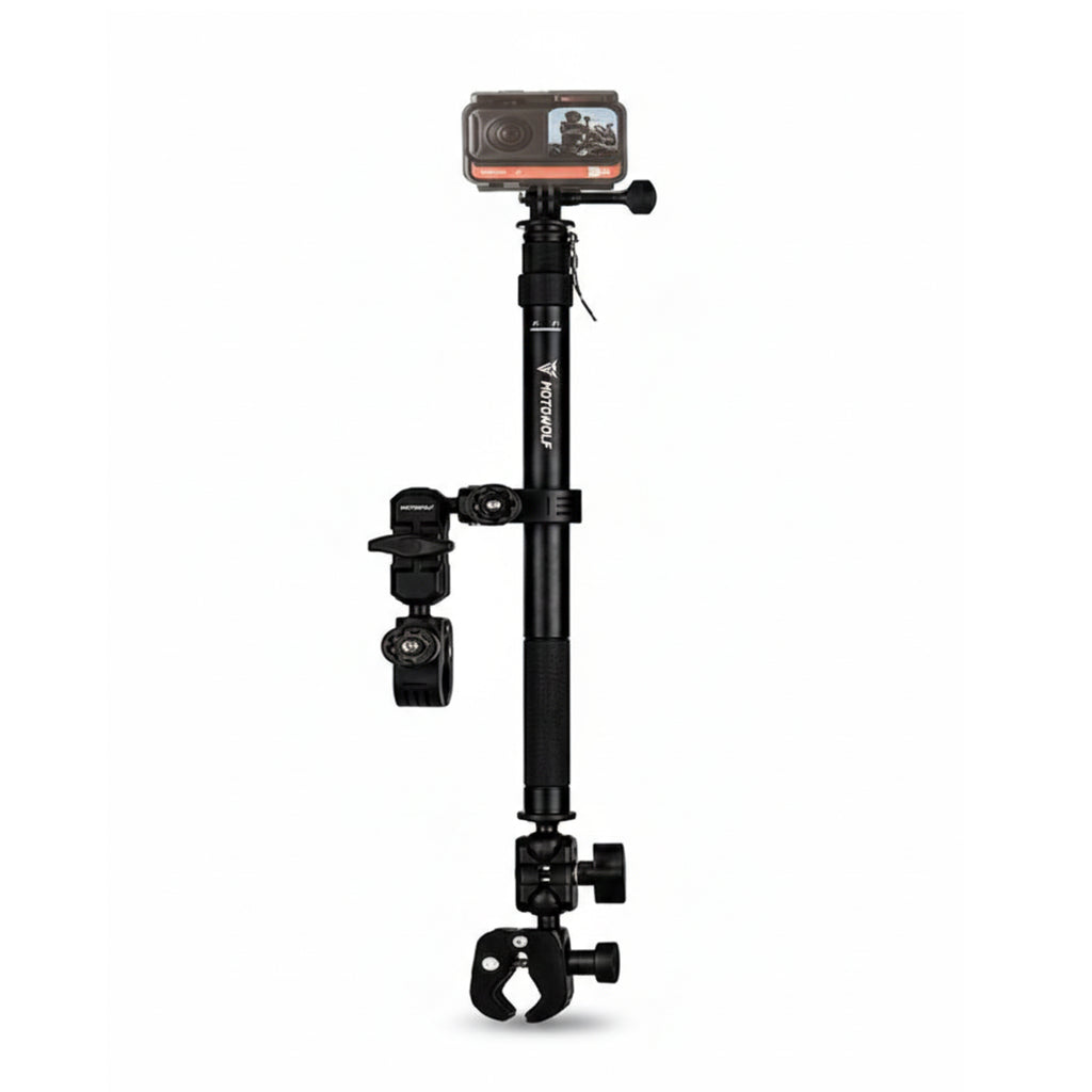 Capture every ride like a pro with Motowolf MDL3531B Motorcycle Riding Camera Stand, a durable and telescopic camera stand perfect for GoPro, Insta360, DJI, and most action cameras. With its adjustable length, 360° ball head rotation, and anti vibration clamping mechanism, you can be sure of a stable camera shot on any road. The camera stand can be attached to a motorcycle's handlebar, frame tubes, and more for easy action camera recording.