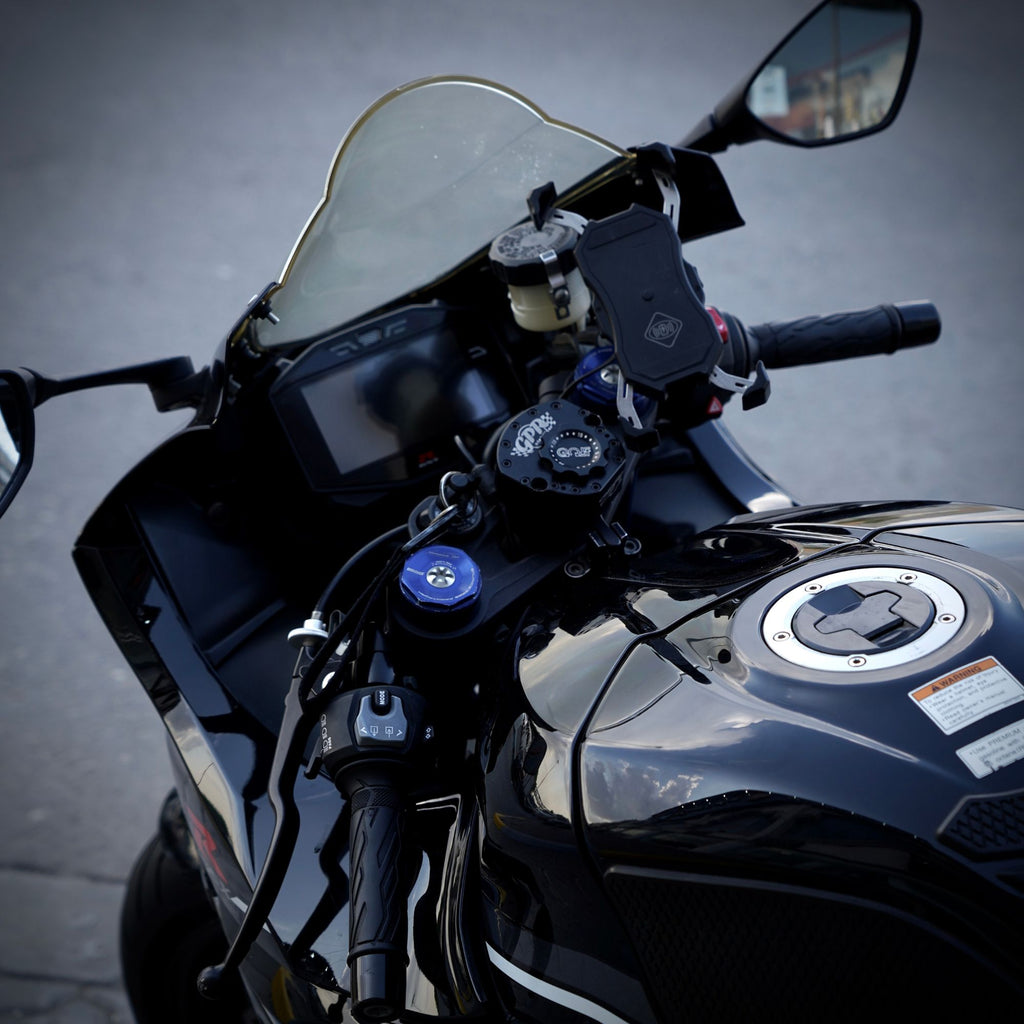 2018 Suzuki GSX-R1000 RR sportbike with high-performance Brooks exhaust, upgraded calipers, extension mounts and phone holder accessory. Street-ready and track capable with aggressive 999 cc liquid-cooled inline-four engine, agile chassis, excellent stopping power, and modern electronics. Priced at AED 42,000.